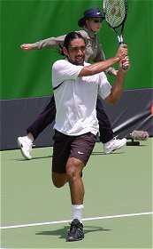 サンバイザーをしていたので誰か分からなかった。近寄ってみたらアンディ・ロディックだった。練習でも親の仇のようにひっぱたいていた。