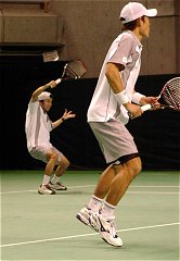 さて10時からは女子の準決勝が始まった。残念ながら私には特に応援しているチームはない。ともあれ北日本物産の藤原里華の試合を見た。相手のワコールの米村知子のテニスも見たかった。藤原は勝つには勝ったがリードした時にテニスが雑になるという悪い癖が出てしまった。第1セットを取ったあと第2セットは集中を欠き、1−5になってから、やっと重い腰を上げた。そのあと6ゲーム連取して、とりあえずストレート勝ちした。ヒンギスなども時々、こういう試合をやる。大物の片鱗を見せたと解釈することにしよう。
