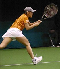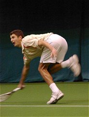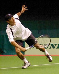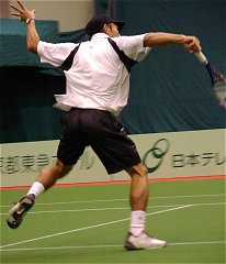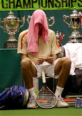 試合後の鈴木の話「第1セットのようなサービスが続いたらだれも勝てやしませんよ。」アンチッチのサービスは第2セット以降、持続しなかった。ファーストサービスが入らなければ、いつ鈴木にネットを取られるか気が気でない。最初のゲームをブレークした鈴木はかさにかかって攻めた。2回連続ブレークし3−0としたところで第2セットは安全圏だ。鈴木のサービスゲームはそれほど安定している。あとはキープを続ければ良い。