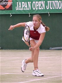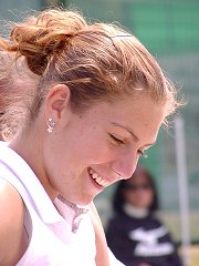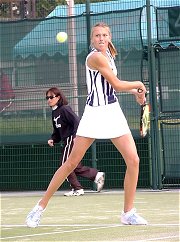 もう一方のシングルス準決勝は注目のマリア・シャラポワだ。噂にたがわぬ美少女であるが表情はそっけない。アンナちゃんもそうだが東欧の選手は人を寄せ付けないような雰囲気を漂わせている。今週はずっと風邪を引いていて体調が今一つ、鼻をかみながらの試合だった。プレイスタイルはただひたすらハードヒットするのみ。