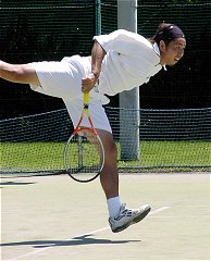 10時から男女のシングルス決勝と女子のダブルス決勝が同時にスタートした。男子のシングルス決勝はストレートで決したが、女子の試合はシングルス、ダブルス共にフルセットにもつれた。女子シングルスは朝日生命廃部にともない、北日本物産に移籍した石川尚子が恩返しとばかりに有終の美を飾った。田口景子は先週のレジーナの森オープンに続いて2連覇を狙ったが、惜しくもならなかった。亜細亜大の時、田口のストロークにはある種の凄みが感じられたが、それが薄れてきたような気がする。私の気のせいだろうか。