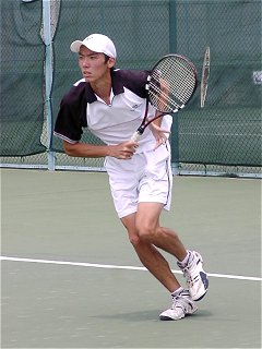 常深は中央大で唯一シードされている。昨年入学したばかりの春関の時は、大勢のコギャルが応援していたのに今日は一人もいなかった。残念。体格に恵まれていない代わりに非凡なフットワークがあるが、足首のけがに悩まされている。どこまで生き残れるか。ストレートで勝利。