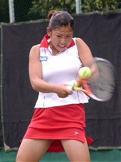 むきになって打ち合うのは止め、ストロークのペースを落とし中村に打たせた。そうすることにより中村のストロークに少しずつミスが増えていった。森上は1ゲームを取り4−1になったところで、落ち着きを取り戻したようだ。ここから8ゲームを連取する。逆に中村のストロークはむきになって打てば打つほど延びがなくなっていった。おそらく中村は4−0になったところで欲が出てきたのだろう。勝てるかもしれないと思ったとたん、無意識のうちに力が入ってしまう。その分ボールに力が伝わらない。このような展開の試合は今まで幾度となく見てきた。自分の気持ちをコントロールするのは本当にむずかしい。中村には勝負に対する駆け引きとか、ずるさをもう少し身につけて欲しいと思う。もし分けてあげられるなら、私がいっぱい持ち合わせているのだが..<いらんわ!