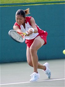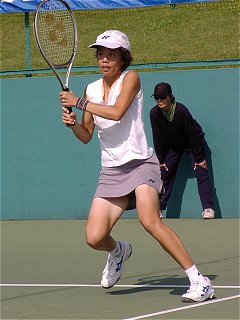 意外にも試合はかなり一方的な展開になってしまった。今日の中村はストロークが不安定で粘りがなかった。一方、井上はコースをよく読み辛抱強くボールを拾い、中村のミスを誘った。唯一、中村にチャンスがあったのは第2セット、2−1とリードしたところだった。ここで絶好のブレークチャンスを逃してしまった。まあ、こんな日もあるだろう。