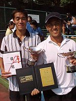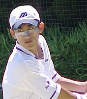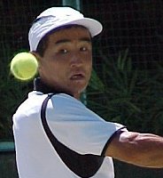 日本のコレチャ、増田健太郎。スペイン仕込みのパワーストローク。今日は1ゲームを取られただけで圧勝。このストロークをぐずせるのはいったいだれ?