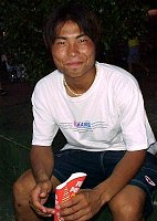日本のラフター、寺地貴弘。今日はラフターばりにおしろいを塗って登場。コートサイドでは化粧くさいおばさまがたが大勢応援、人気者!