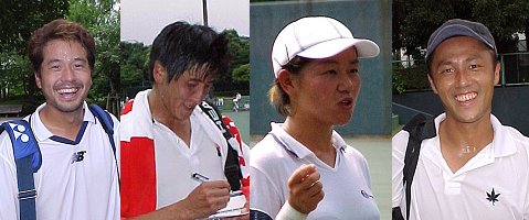 左から、シングルス決勝進出の辻野さんと田中芳伸くん、どちらも北日本物産所属です。決勝はこの二人で争われます。その次は、占部奈美ちゃんに勝ってシングルス優勝の亜細亜大、田口景子ちゃん。最後は、アズメディアカップにも優勝したばかりの古庄さん、ダブルス決勝進出です。