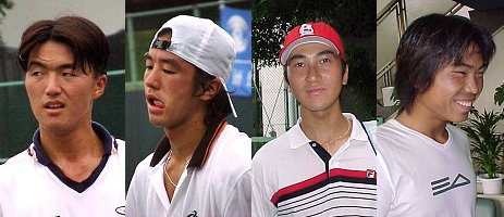 同じく左から、辻野さんに負けた近畿大の權くんと、田中くんに負けた中瀬くんです。亜細亜大の石神理貴くんは高校時代の同級生、たすくっちと組んでダブルスに出場しました。右端は辻野さんに惜敗した本村浩二くんです。あれっ?浩二くん、あんたは今日負けたんじゃないでしょ!中瀬くんの試合を観に来たのですが、着いたら終わってたそうです。チャン、チャン。