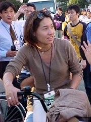 なぜか会場内を自転車で走りまくるダテック。なにやってんだか...