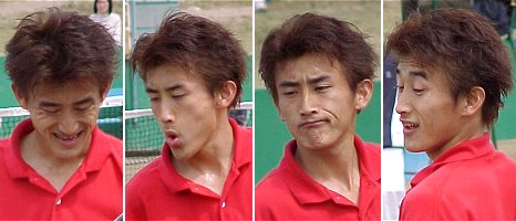 風も止み暖かく、薄日のさす絶好のコンディションとなった。寺地貴弘の増田健太郎に対する2週間前の勝利がフロックではなかったかどうか確かめたかった。しかし結果は杞憂に終わった。寺地は増田の執拗な振り回しにも粘り強く返球し、最後には増田のミスを誘った。心配されたスタミナも以前に比べてかなりついてきた。息が切れるほど走らされてもエンドチェンジの休憩で回復していた。なんといってもクレーコートで増田に勝ったことは大きな自信になるだろう。第1シードとはいえ国内フューチャーズ3連戦で2勝は立派な成績だ。さあ、これからは海外で結果を残さねば。