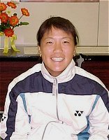 2000年 5月 4日 カンガルーカップ 第2日 半分寝ぼけた状態のベッドの中、なんとなく周りの雰囲気がおかしい。おもむろに時計を見たら、なんと10時半だ。しまった!うっかりしてアラームのスイッチを入れるのを忘れていたようだ。慌てて身支度をし、タクシーに飛び乗った。着いたらどの試合も第1セットが終わろうとしていた。遅刻は会社だけにしたいものだ。<おい 今日はシングルス2回戦に進んだ小畑沙織、宮城ナナ、吉田友佳、浅越しのぶ、井上青香の5人全てが勝ち、準々決勝に進んだ。うれしい。国内で行われる国際大会なのだから日本選手は目いっぱいアドバンテージを生かし、勝ち上がるのが望ましい。しかし残念ながら明日の準々決勝ではこの中から少なくとも2人は消える。日本人同士の対戦が2つもあるからだ。