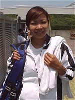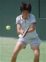 2000年 5月 5日 カンガルーカップ 第3日 今日も終日快晴、暑い一日だった。トーナメントが進み、選手が少なくなるとともに観客が増えてきた。明日はもっと増えるだろう。シングルス準決勝には日本選手が3人も進んだ。外国選手は第1シード、タイのタナスガーンのみだ。しかし今日のタナスガーンは危うくスロベニアのティナ・ハーゴールドに負けるところだった。第3セット終盤腰の治療のためメディカルタイムアウトを取った。なんとなく表情も冴えなかった。 明日はすべての試合に日本選手が出場する。近くの方はぜひ応援に駆けつけると良い。 シングルス準々決勝 タマリネ・タナスガーン 6-4,3-6,6-4 ティナ・ハーゴールド