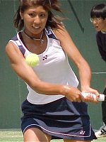 センターコートのダブルスは面白かった。4人が4人とも十二分に持ち味を発揮した。第2セットのタイブレークでは、もっと見たくなったので第3セットにもつれ込むことを期待したほどだ。観客も満足したことだろう。特に4人の中で一番小柄なプラクシャのパワーには、みんな驚いた様子だ。プラクシャは今までワイネ・プラクスヤと読んでいたが、今回ドローの表記もアンパイアのコールもウィーネ・プラクシャであったので、これからはこちらを採用する。外国名の日本語表記はむずかしい。 浅越 しのぶ/吉田 友佳 6-4,7-6(5) ジャネット・リー/ウィーネ・プラクシャ
