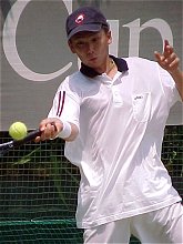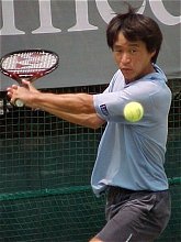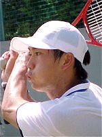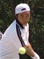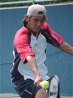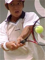 2000年 8月 20日 お盆明けの最初の日曜日、道路も空いてて昭和の森テニスクラブには45分で着いた。おまけに駐車場は無料解放していたので駐車料金も助かった。昭和の森オープンは決勝に誰が残っているのか分からなかった。行ってみるとシングルス決勝4人のうち3人が大学生だった。そのなかでも私の注目は近畿大の加藤季温だ。インカレの時はゆっくり見られなかった。最近急激に力をつけているようなので、ぜひ見たかった。同時に始まった田口と仲島の女子決勝も捨て難かったが、女子の試合のほうが長引くことを予想して、男子側のコートに腰をおろした。 今日は土屋のネットプレーが冴えた。加藤のコースをよく読み、ボレーの切れも良かった。加藤は試合中にポケットからボールを3回もこぼしペナルティを取られるなど、けちがついた上に調子はいまいちだった。 男子シングルス決勝 土屋 哲史 6-4, 6-3 加藤 季温