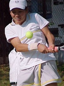 2000年 11月 23日 笹子トンネルを抜けると快晴だった。あまり気温は上がらないという予報に、ひざ掛けを2枚用意し、万全の防寒対策をして出掛けた。しかし1日中快晴で日なたは暖かく、最後まで使うことはなかった。えてして、こんなもんだ。 今日は国内で開催される20世紀最後の国際大会、ルネサンス国際女子エストTC甲府オープンの観戦だ。直前になって外国選手の出場取り止めが相次ぎ、本戦に出場した外国選手は韓国のオー・ユンミひとりだけとなった。主催者はすでに地元マスコミに対して、今年は大勢の外国選手が出場するとアナウンスしていたため、観客以上に落胆は大きい。ともあれこれで多くの日本選手にWTAポイントが得られるチャンスが増えたことも事実だ。もらえるものはもらえる時にもらっておこう。 第1シードは昨年のディフェンディングチャンピオン、梅原幸恵だ。金網越しに写真を撮るのは煩わしいので今日は写真も撮らず、じっくり梅原のシングルス2回戦を観戦した。対戦相手はただひとりの外国選手、オー・ユンミだ。4−2、4−0、4−2のストレートセットで勝った。はじめて観る4ゲームショートセット制の試合だ。1セットが6ゲーム制より2ゲーム少なく、その代わり最長で5セット行なう。3セット先取した方が勝ちだ。