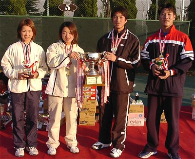 2000年 12月 9日 昨日の天気予報では、ただ一言「晴れ」、ひょっとしたら20世紀最後のテニス観戦になるかもしれないと思い、埼玉オープンの決勝を観に行った。巡り合わせが悪く、男子の試合は観られなかった。 世紀末は、やはり女子の試合で締めたい。女子シングルス、下の山は予想通り亜細亜大の田口景子が勝ち上がっていた。ところが、上の山は西川裕子が第1シードの和田奈々を4時間7分の激闘の末、破った。どうやら和田奈々はよっぽどテニスが好きらしい。2週間前の甲府オープンでも4時間17分のマラソンマッチをこなしている。 女子単