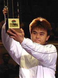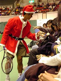 2000年 12月 24日 イザワクリスマスオープン、20世紀最後のトーナメントは本村剛一の優勝で幕を閉じた。全日本テニス選手権と同じ顔合わせになったが、試合の流れはかなり違ったものになった。權は全日本のスタミナ切れを反省してか、より仕掛けを早くしてきた。バックハンドはスライスで繋ぐことを少なくし、トップスピンで応酬した。この作戦は悪くなかったが、計算違いが一つあった。本村が調子の良い時の状態に戻っていたことだ。ストロークはかすれることなく厚くあたり、本来のスピードが蘇っていた。試合はフルセットになったが、本村には余裕があった。 女子ダブルス決勝