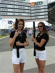 賭け率を書いた看板を持って会場内をうろついている賭け屋のおねえちゃん。おねえちゃんの方には興味があるが賭けには興味がない。そっちのほうがよっぽどギャンブルだって?鋭い!私もそう思う。