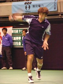 女子の試合が長引いたため男子の準決勝は約1時間遅れて始まった。今日一番の注目はもちろん北日本物産の本村剛一とNECの石井弥起の対戦だ。私を含め、観客は昨年の決勝での死闘を期待せずにはいられなかっただろう。しかし、期待は裏切られてしまった。本村は昨年のようなポテンシャルを持続できなかった。第2セット、タイブレークに持ち込むのが精一杯、試合の流れは石井が支配していた。NECは勢いに乗って3連勝、決勝へ進出した。