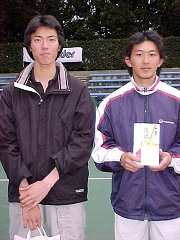 2001年 3月 3日 千葉オープン 決勝 今年初めてのJOPの大会だ。首都高は朝から事故が多く、いたるところで渋滞していた。2時間20分余りかかって鷹之台テニスクラブに着いた時には、シングルス決勝はすでに始まっていた。天気予報では暖かくなるということだったが、ダブルスの途中から天気が怪しくなり、最後はふるえながらの観戦となった。観客は10〜20人程度、クラブの会員は通りすがりに1〜2ゲームのぞいていくだけで、自分がテニスをすることに忙しい。 シングルス決勝はNECの坂本正秀と中央大の内海大考の対戦だ。2人のシングルスはじっくり観たことがなかったので楽しみにしていた。しかし結果はあっけなく、JOP88位の坂本が197位の内海をダブルベーグルで圧倒した。今大会は内海にとっては予想もしなかった展開だったろう。準々決勝の田口亮太が棄権、準決勝では第1シードの寺地貴弘が1セットを終わったところでまたもや棄権、あれよあれよという間に決勝の舞台に引きずり上げられてしまった。練習も心構えもできぬ間に、主役に祭り上げられたようなものだ。少々荷が重かったかもしれないが、これも仕方なかろう。 ダブルス決勝は元気の良い大学生同士の対戦だ。この試合は見ごたえがあった。一進一退の攻防から、かろうじて亜細亜大ペアが早稲田大ペアを振り切った。 シングルス決勝 坂本 正秀(NEC) 6-0, 6-0 内海 大考(中央大学) ダブルス決勝