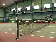 今朝はどうしても早く行かなければならなかったので6時に起きた。窓を開けてびっくり、なんと雪が降っているではないか。とりあえず用意をしていったん出かけたが、あまりに雪がひどいので引き返してしまった。あきらめてもうひと寝入り、8時過ぎに念のため大会本部へ電話で問い合わせたら、インドアでやると言うことであった。慌てて、家を飛び出した。