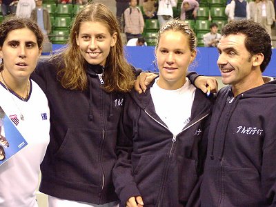 喜びに沸くアルゼンチンチーム。左からラウラ・モンタルボ、クラリサ・フェルナンデス、マリア・エミリア・サレルニ、ちょっと濃い目の監督。
