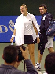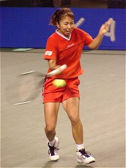 怪我の回復が思わしくない浅越しのぶに代わってシングルスに登場した吉田友佳。第1セットのセットポイントをものにできなかったのが痛かった。