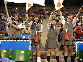 よしこさんが調達してきたコギャル型応援ロボット(ミレニアムバージョン)。背中のネジを巻くだけで文句も言わずひたすら応援をする。デ杯でも活躍した。ただし売り物ではない。<おい