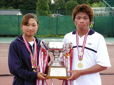 ダブルス優勝の平知子/堀川奈緒子と朴潤九/宮崎靖雄