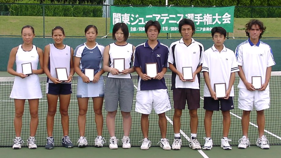 16歳以下シングルス準優勝、チームスカンジナビアの佐藤夏大樹。雑誌でも時々紹介されているので、ご存知の方もいるだろう。エキゾチックな顔立ち、なかなか男前だ。関口亮に粘られて、最後はスタミナ切れしてしまった。2セットで勝負を決めるべきだった。