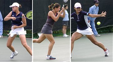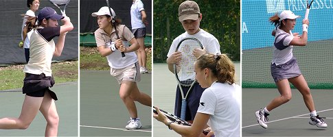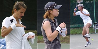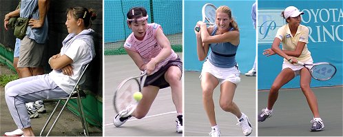 2001年 9月 16日 トヨタプリンセスカップ 予選第1日 写真を切り貼りして遊んでたら、えらい時間がかかってしまった。画像が小さいので半分も選手の名前がわかれば十分オタクだ。仕事の合間にでも遊んでいただきたい。<こらこら 予選は例によって写真を撮りながらコートを渡り歩いた。例年ならば本戦出場選手の多くがすでに練習しているはずだが、今年はテロの影響でほとんどまだ到着していないようだ。練習コートも閑散としてがらがらだ。予選の選手でさえ到着が遅れ、シングルス1回戦の3試合が翌日に延期された。しかも明日月曜日の初日の本戦はシングルス1試合、ダブルス1試合しか行なわれず、他の試合はすべて予選という変則的な日程になってしまった。あらかじめチケットを手に入れて楽しみにしていたお客さんはとんだ災難となった。
