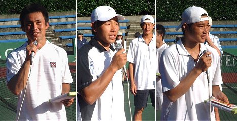 同じ日に男子フューチャーズの鷹之台オープン決勝が行なわれた。モモさまからウィナーズスピーチの写真を送っていただいた。ダブルスは鈴木貴男/近藤大生が優勝、さすがにこのレベルでは強い。 Singles Finals