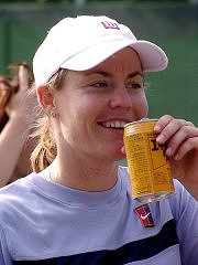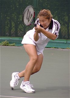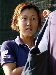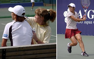 今日最大の殊勲は第5シードのタラ・シュナイダーをストレートで下した伊東千佐世だろう。この写真は練習中のもの。
