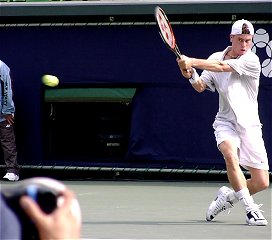 はじめて見たスイスのクラトチビル。なかなかこぎみ良いテニスをする。しかも若くて男前、人気出そう。決勝ではヒューイットにどこまで食い下がれるか。