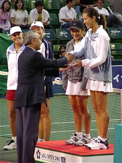 タナスガーン(右)はクルーガー(左)を破って決勝進出。フルセットにもつれこむかと思われたが、ストレートで押し切った。決勝はセレスとの対戦である。セレスにはトヨプリで2年連続、こっぴどくやられたことがある。それでも必死でボールに喰らいついていたのが印象的だった。あれからタナスガーンも随分成長した。リベンジなるや否や。