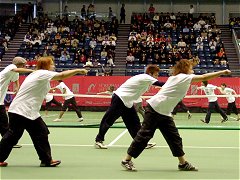 さて注目の日本選手同士のシングルス決勝やいかに! 昨日は本村自身「サーフェスからいって貴男有利でしょう。」と言っていたが、これは単なる牽制だった。本村は第1セットこそ一方的に獲られたが、第2セット以降はお互い一歩も譲らず、息の抜けない展開となった。第3セット第10ゲームで先にマッチポイントを握ったのは本村だったが惜しくも生かせなかった。タイブレークに入った時には、もはや勝敗は二の次になっていた。