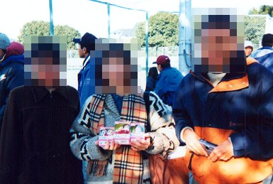 手に持っているのはテニマガ1998年3月号で紹介されていたりかちゃん、ブチくん、ひできくん人形。ストーカーに狙われるといけないので素顔は、ひ・み・つ。