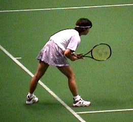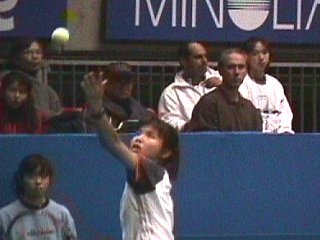 | 試合が終わった後、練習を始めたアンケとリンゼイです。練習といえどもさすがにトップ10、2人のラリーは迫力満点です。期せずしてオーストラリアンオープンの準決勝で破れた2人です。お互いなぐさめあっているのでしょうか。 |