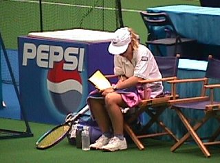 この選手はコートチェンジのたびにノートに何か書いていました。まさか日記では。