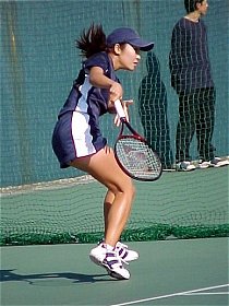 里華ちゃんは昨年、第1シードの佐伯美穂ちゃんを破ってベスト4、今年はベスト8でまたしても第1シードと対戦することになりました。前日、久松志保ちゃんとの試合では第1セットを獲られ、第2セットも0−5の崖っぷちからの大逆転という薄氷の勝利でした。