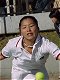 第3セット、今度はどちらも譲らず第6ゲームまでサービスキープが続き、緊迫した展開になります。デュースにはなるのですが、お互いなんとかふんばってキープします。そして第7ゲーム、手塚/新井組が待望のブレーク、第8ゲームもしっかりサービスキープし、5−3の王手。ところがここから大学生ペアの怒涛の反撃、なんと4ゲーム連取して勝利をもぎ取りました。マッチゲームになってから、手塚/新井組がちょっと消極的になったところをつけ込まれてしまいました。