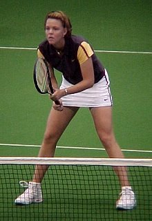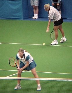 シングルス1位から4位、ダブルス1位から6位までが揃った、豪華な大会となりました。全豪オープンに優勝したばかりのマルチナの充実ぶりが目立ちました。今回のスナップは土曜日の準決勝の模様です。インドアは光量が不足しているので、デジカメでは動きのある写真は撮れません。あしからず。