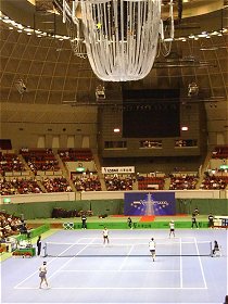 ![]() 男子ダブルス優勝は佐藤博康/原田夏希。優勝スピーチで原田選手は日本リーグを最後に引退を表明。華麗なボレーが見られなくなるのは残念。 |