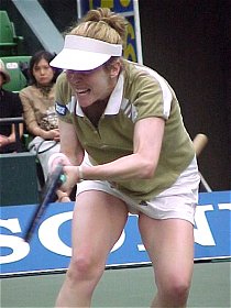 女子シングルス決勝 J.H.デキュジ(フランス) 5-7, 7-5, 6-4 A.フレージャー(アメリカ) 獲ったら獲り返す、冒頭から激しいストローク戦になった。先にマッチポイントを迎えたのはフレージャー。しかしデキュジは4つのマッチポイントをことごとくはね返した。3−5から逆転してセットオール。第3セットに入っても一進一退、息詰るような攻防が続く。最後は勝利の女神の、ほんのわずかな気まぐれが勝敗を決めた。気がついたら試合開始から2時間半がたっていた。