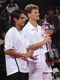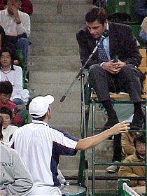 男子ダブルス決勝 M.ブパシ/L.パエス(インド) 6-4, 6-7(1), 6-3 M.ヒル(豪)/J.タランゴ(米) お互いに持ち味を出した見ごたえのあるダブルスだった。個人的には一番面白かった。とにかくスピードが凄い。タランゴもサービス精神を発揮して、何回か審判に食って掛かっていった。期待感もあってか、観客は大喜びだ。審判も勝手知ったるもの、適当にあしらっている。