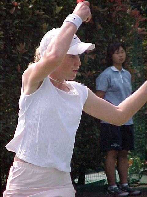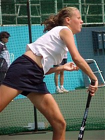 チェコの17歳、ダニエラ・ベダノワ。どこかで見たことがあると思ったら、昨年のスーパージュニア優勝者だ。すでにジュニアは卒業、からだは細いがストロークはしっかりしている。上に上がっていくのは間違いない。