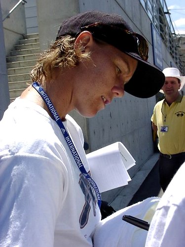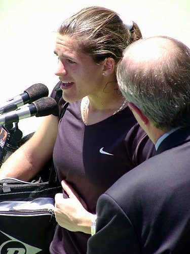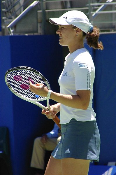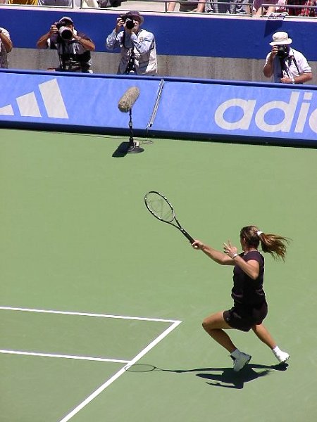 Adidas International 2001 2001/01/11 第5日 シドニーに来てから4日目、そろそろ疲れがたまってきた。今日はナイトマッチを観るのも止め、マルチナ対セリーナの準々決勝に集中した。今年最初の4強の対戦だ。マルチナが6−4、7−5のストレートで勝った。セリーナはミスが多く、まだ本調子ではないようだった。一方のマルチナは気合十分、今年の意気込みを垣間見せた。