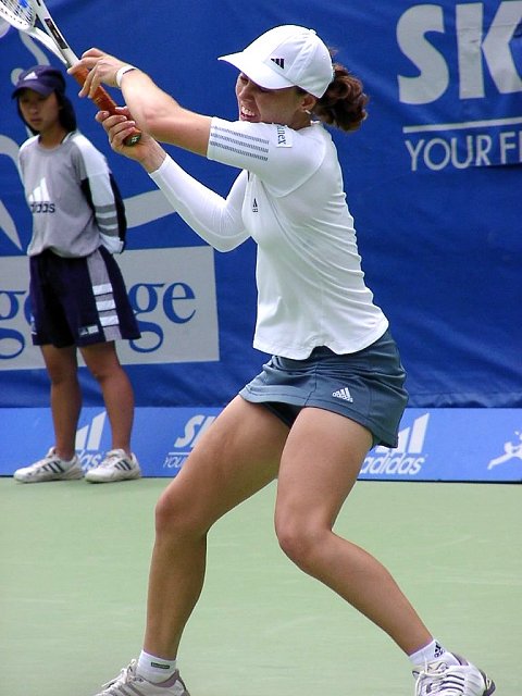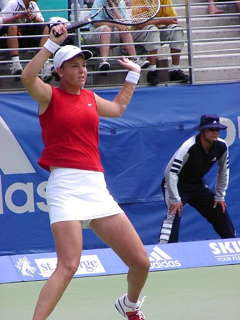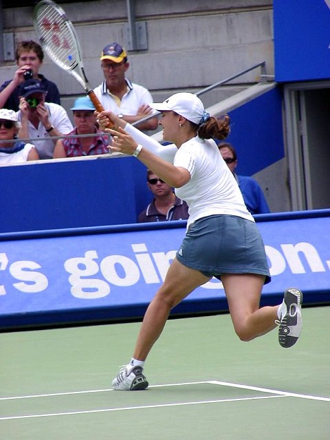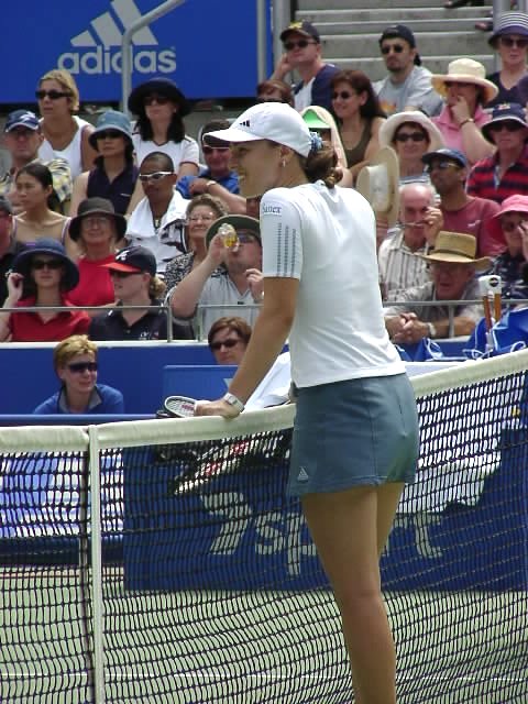 女子シングル決勝はヒンギスが新世紀の決意を高らかに宣言した。スコアは6−3、4−6、7−5。この2人が戦えば、どちらが勝とうと負けようと接戦になることは必至だ。ほんのわずかの差で勝負はどちらかに転ぶ。ほんのわずかの差をものにしたのはヒンギス。第3セット、1−4とリードされながらも粘りに粘ってチャンスを待った。ヒンギスにはダベンポートのような一発で決める大砲は持っていない。パワーのある相手には素早いコート・カバリングと巧みな戦術で相手を蜂のように刺し、次第にダメージを奪っていく。ヒンギスにはこの作戦しかないだろう。大砲に粉砕されるのが早いか、蜂の毒がからだに回るのが早いか、このくらいの差しかないように思う。