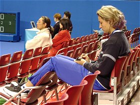 ダブルスパートナーのフサロワの試合を観戦中。