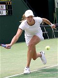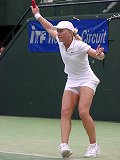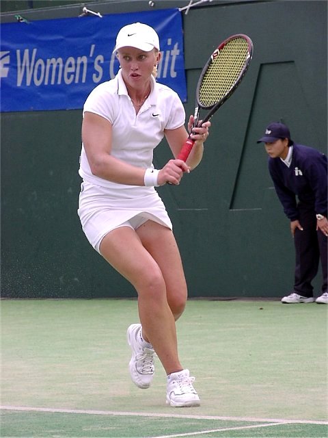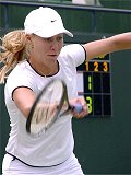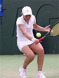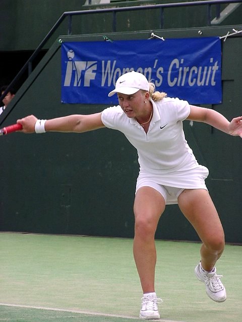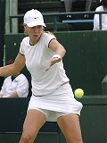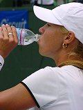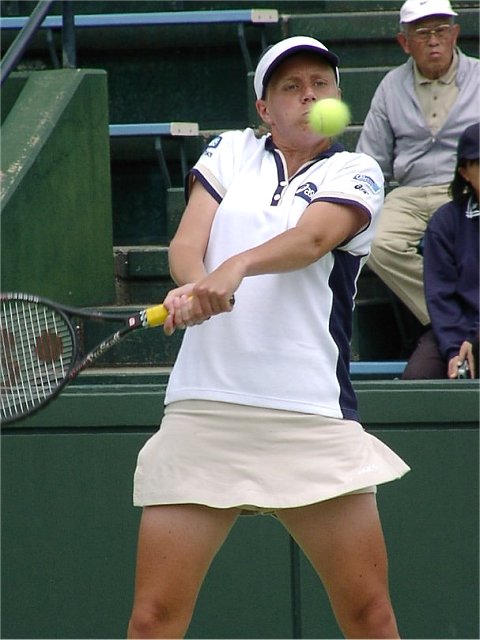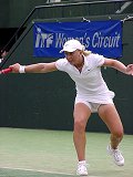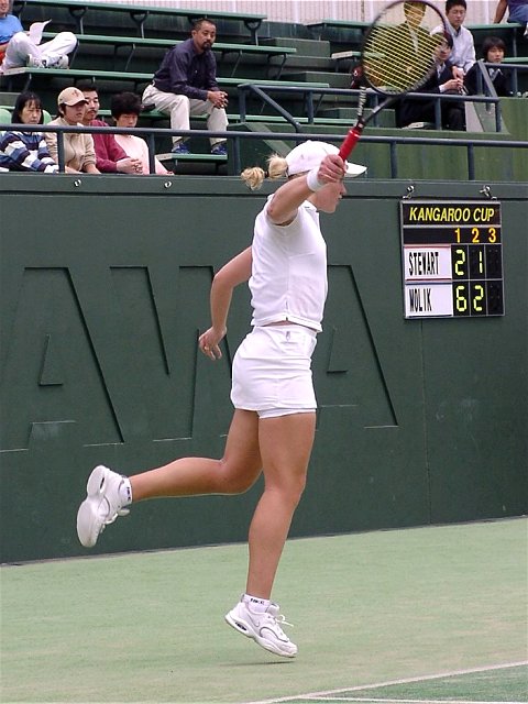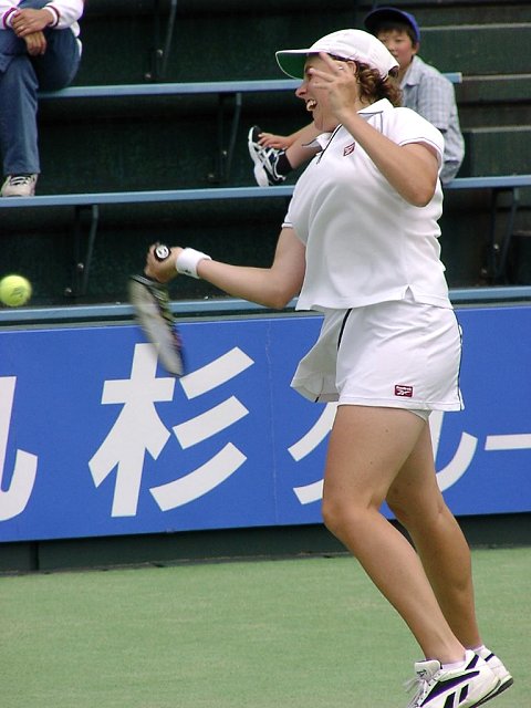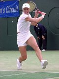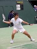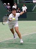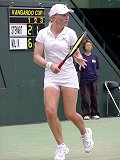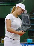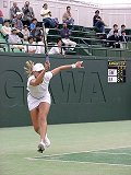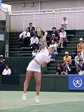 昨日のヴォロコワ戦で見せたスチュワートの素晴らしいストロークはどこへいったのだろう。モリックのストロークは確かに深かったが、ヴォロコワと較べてもそれほど厳しいようには見えない。面白いように入っていたダウン・ザ・ラインがことごとくネットに引っかかってしまう。一方のモリックはサービスが良く入った分、楽にゲームを運ぶことができた。大きな山場もないまま、終わってしまった。 1998年の久我山オープン決勝の時のスコアは6−4,6−2だった。このときも随分あっさりと終わったような記憶がある。スチュワートはモリックにはかなわないとでも思っているのだろうか。ちょっと淡白だ。 |